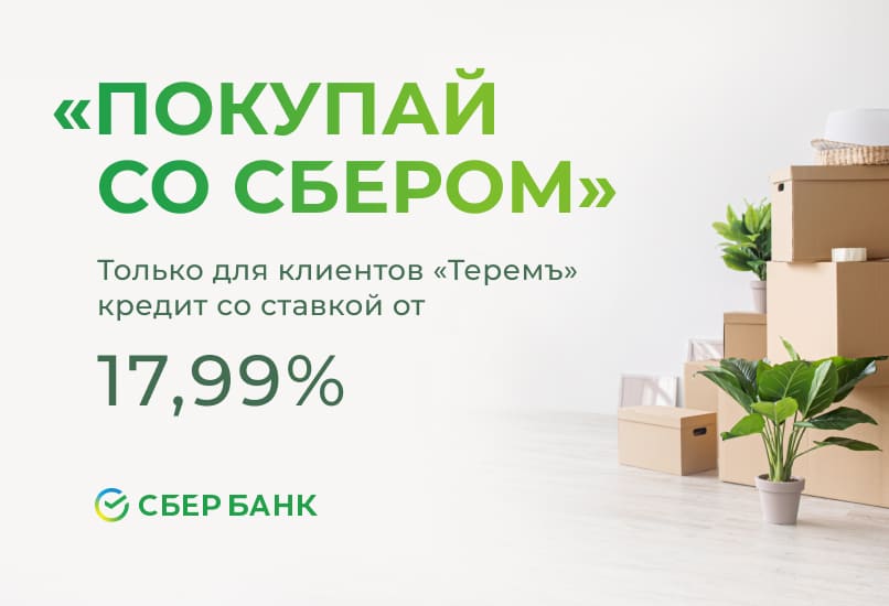 Кредит по ставке от 17,99% годовых от «Сбера» — партнёра компании «Теремъ»