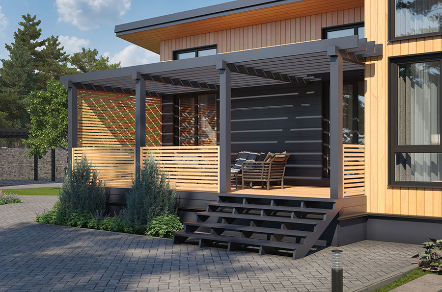Наружная отделка: сайдинг «Технониколь», цвет «Эдельвейс» (серый), по ОСП 9 мм