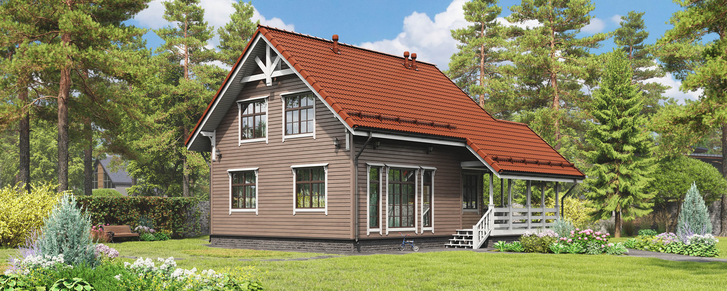 Отделка стен сайдингом, кровля из металлочерепицы и отделка цоколя придадут дому привлекательный внешний вид.