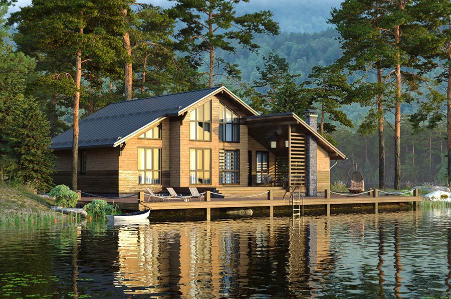 Свайный фундамент и усиленный каркас стен 200 мм, крепко сшитый снаружи плитами ОСП-9, делают дом прочным и долговечным.
